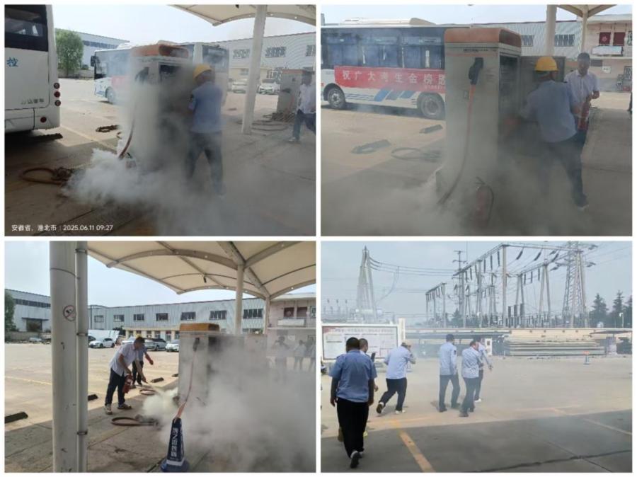 公司以“实战化、标准化、规范化”为原则,构建三级筹备体系:组织保障:成立应急演练领导小组,精心策划演练方案,明确各部门及各参演人员职责;资源整合:配备油盆、干粉灭火器、火灾烟雾弹、绝缘手套、急救箱等多种类专业物资,调试模拟事故纯电动公交车、充电桩火灾仿真模拟,还原真实险情场景;能力筑基:组织驾驶员、充电工等岗位人员深入学习应急预案,确保“人人懂流程、岗岗知处置”。