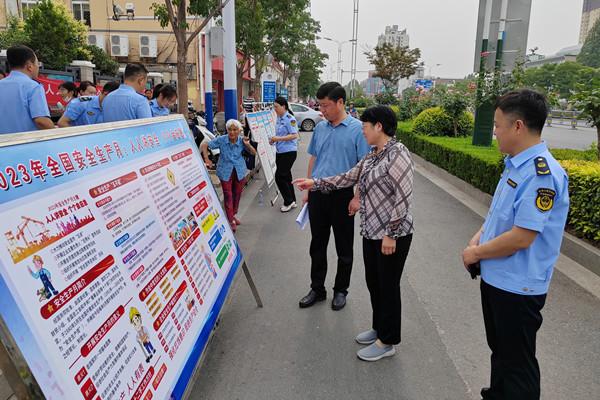 为进一步提升全民安全意识,增强防灾减灾、自救互救应急能力,切实保障人民群众生命财产安全。6月16日,县安委会成员单位在县政府门前开展“安全生产月”咨询日宣传活动,各镇(园区)同步开展。县人大常委会副主任朱秀芳、县应急局局长闫成法亲自走上街头参与活动,接受群众咨询。